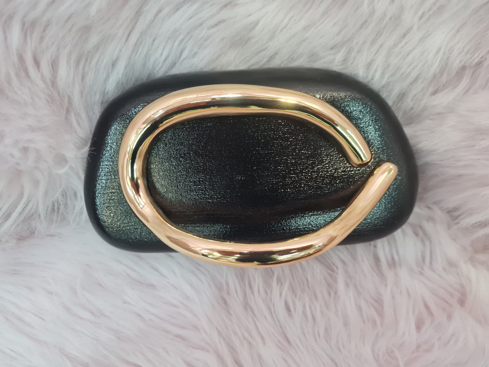 This elegant clutch bag boasts a sleek design with gold detailing. Perfect for a night out or formal event, it adds a touch of sophistication to any outfit. Crafted with quality materials, it is sure to make a statement and elevate your style.