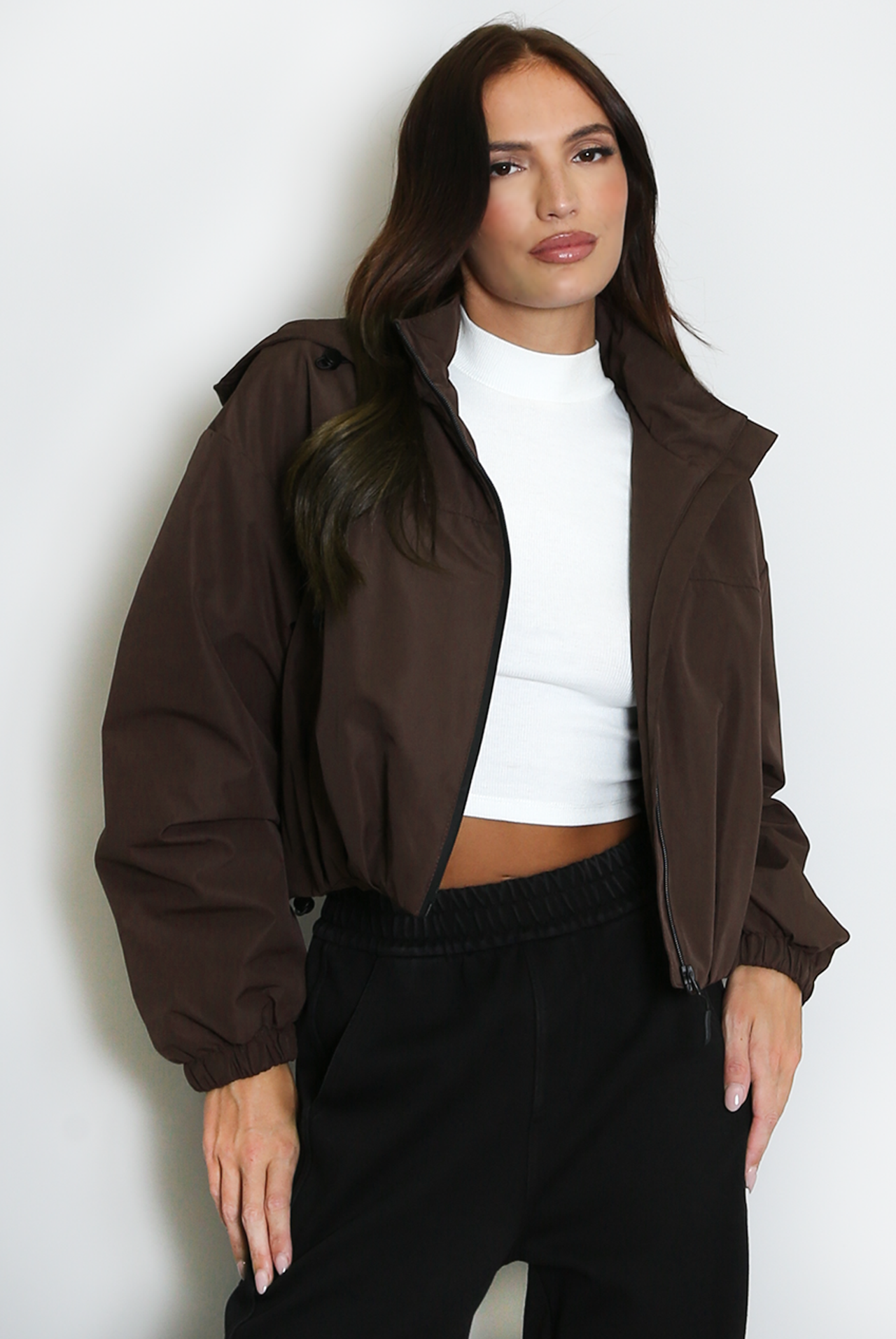 This Premium quality Cropped Hooded Jacket is perfect for staying stylish and comfortable in any weather. The cropped design adds a trendy touch, while the hood provides extra protection. Crafted with top-notch materials, this jacket offers both style and functionality.