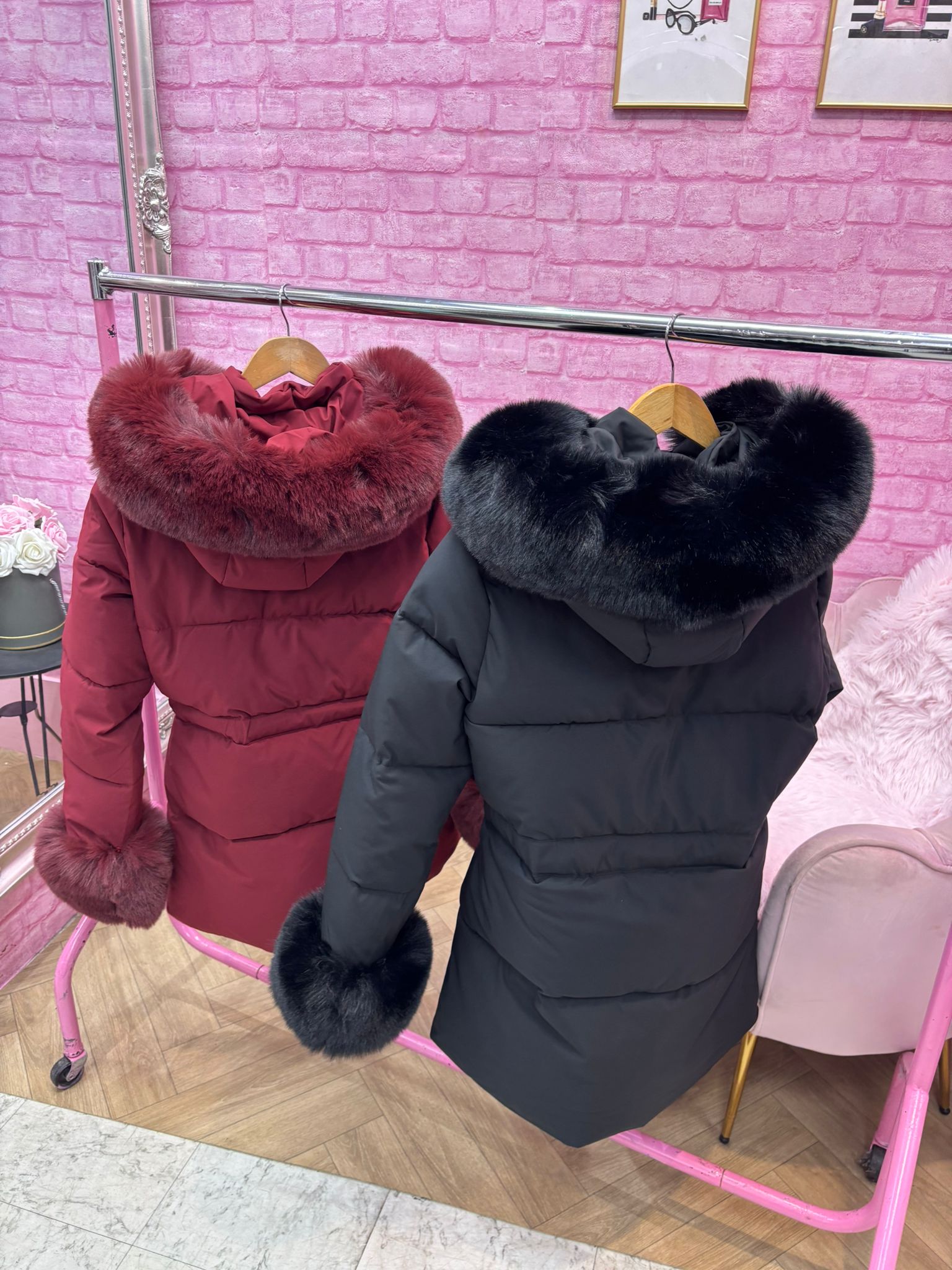 Padded Fur Hooded and Cuff Coat